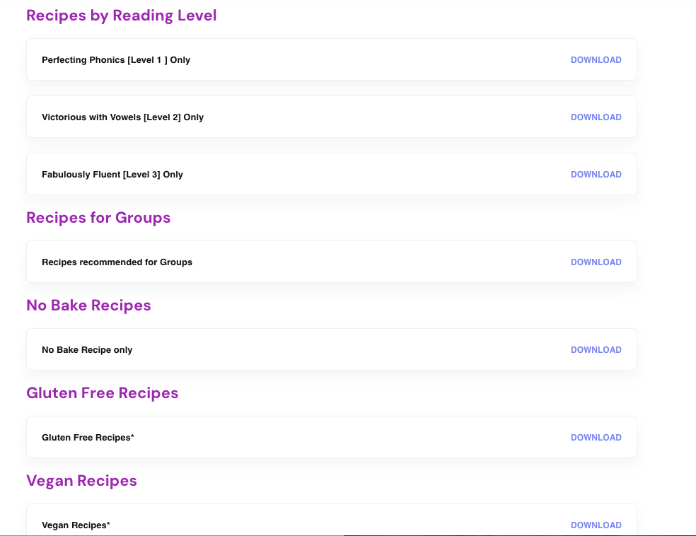 Each recipe comes with 3 levels of reading difficulty. These recipes make reading feel natural, interactive, and fun